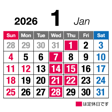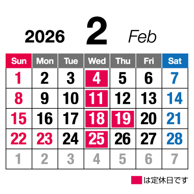 毎週水曜日 定休日